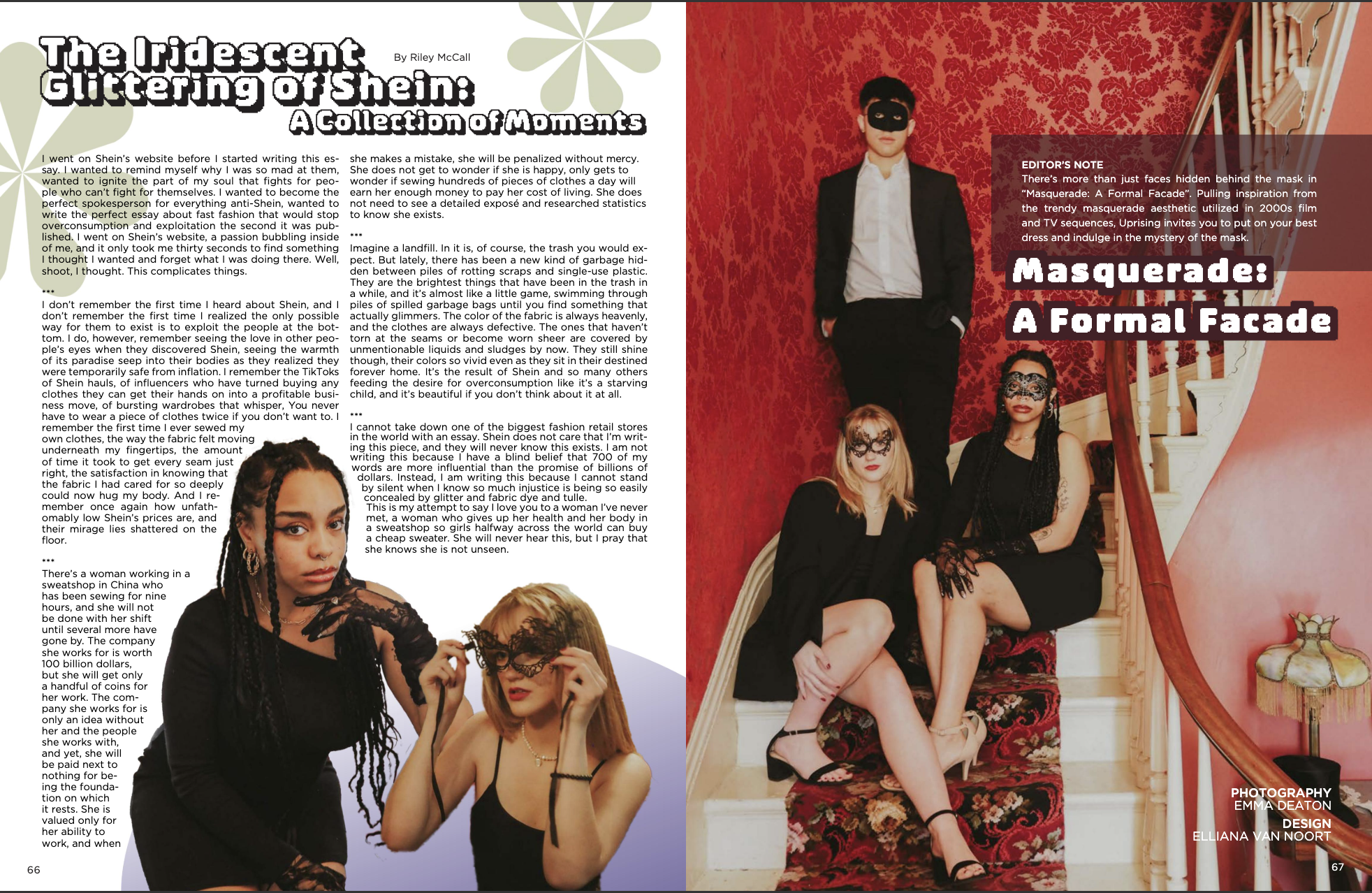 These works are from my Spring semester in 2024. It was my second semester working with Uprising magazine, the on campus fashion and social justice magazine club.
